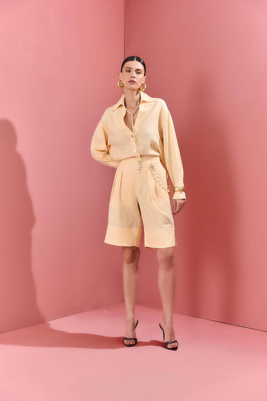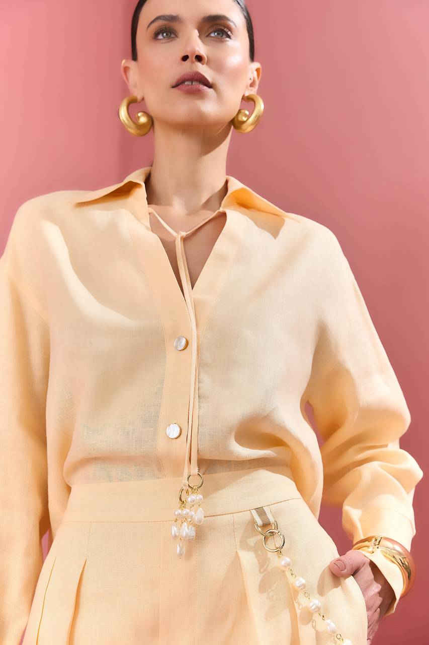 Camisa Linho Rolotê Pérola - Manteiga CAM0020MAN