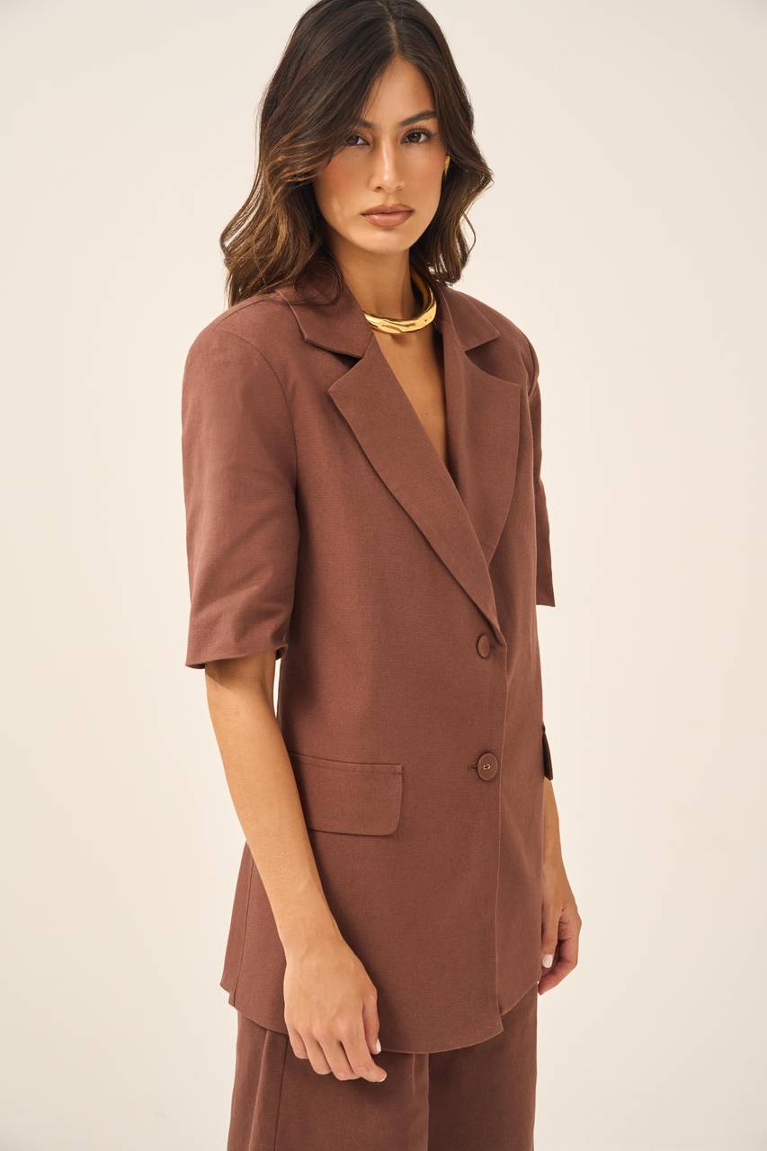 Conjunto Blazer E Bermuda Manga Curta - Marrom CJT0010MRO