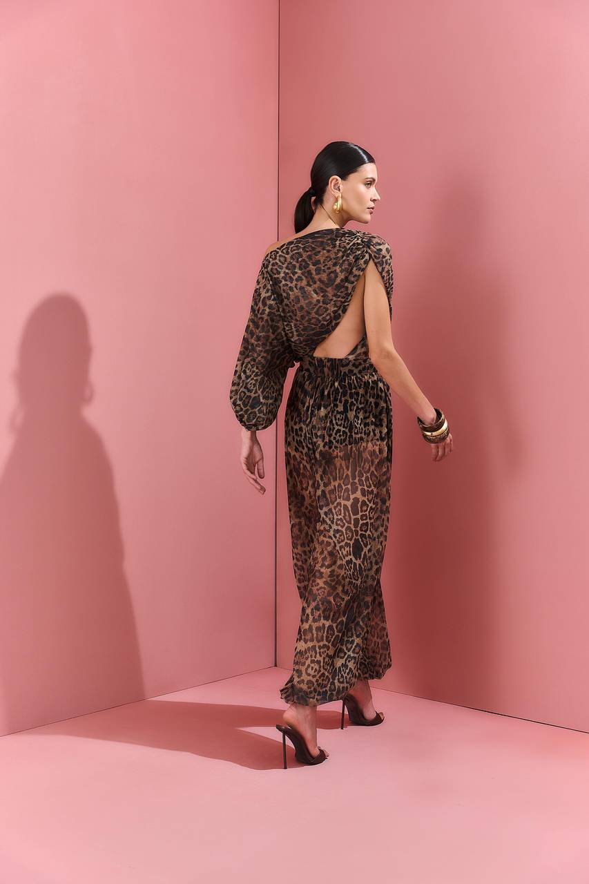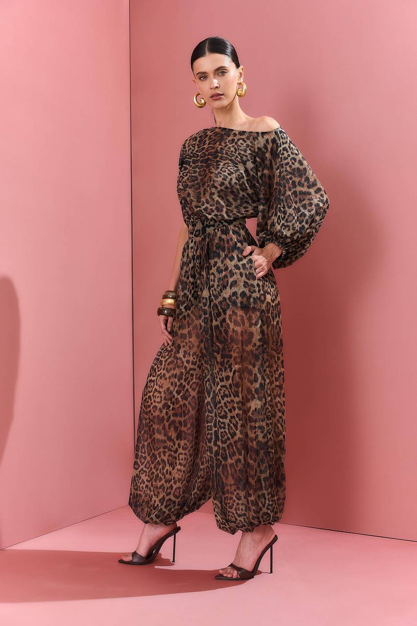 Um ícone de estilo para mulheres que desejam ousadia e sofisticação em um só look. Este macacão em animal print traz modelagem fluida com mangas amplas, cintura marcada e decote ombro único, equilibrando sensualidade e elegância. O tecido leve cria movimento e conforto, tornando-o ideal para eventos noturnos e ocasiões especiais.