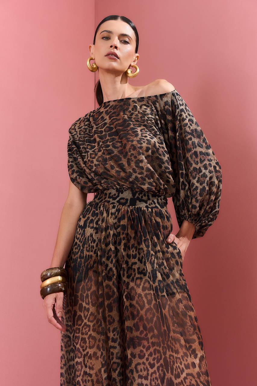 Macacão De Tule Ombro Aparente - Estampa Onça MAC0037EST.ONÇA