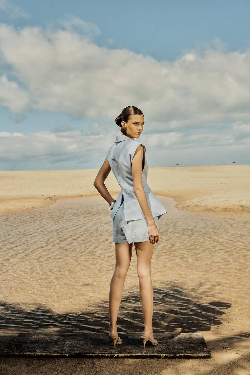 Short de alfaiataria em linho com recorte reto e bolsos frontais utilitários. A modelagem é levemente solta, garantindo conforto e sofisticação. Perfeito para compor looks leves e elegantes nos dias quentes, com ar despretensiosamente chic.