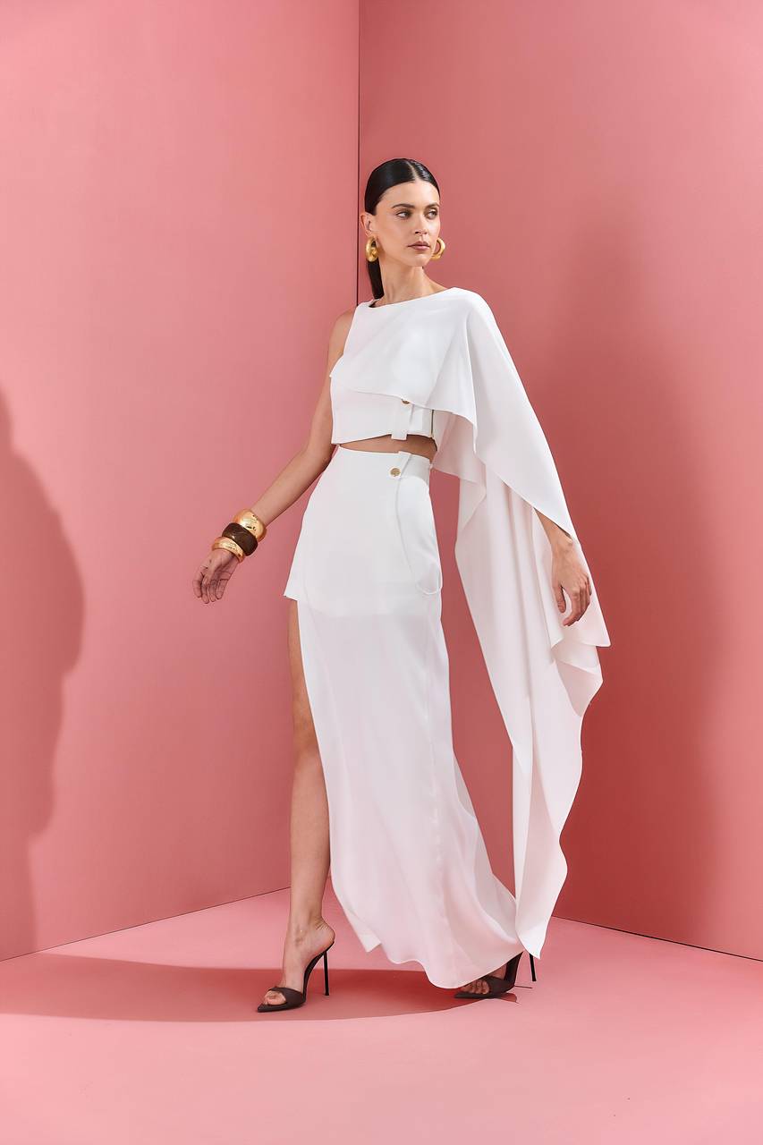 Elegante e impactante, esta saia longa em tecido acetinado possui cintura alta e recortes limpos que alongam a silhueta. A fenda lateral profunda adiciona sensualidade sofisticada, criando movimento e leveza ao caminhar. Versátil e imponente, é perfeita para compor produções noturnas e ocasiões especiais.