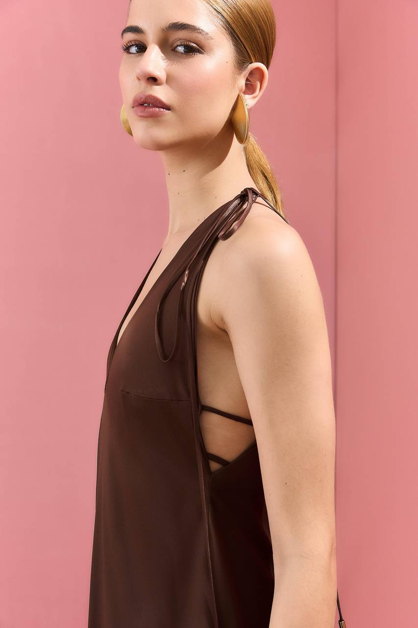 Vestido Decote V Longuete C/ Pontas - Marrom VES0048MRO