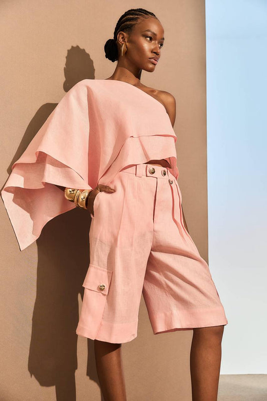 Bermuda Linho Bolso Cargo - Rosa BER0019ROS